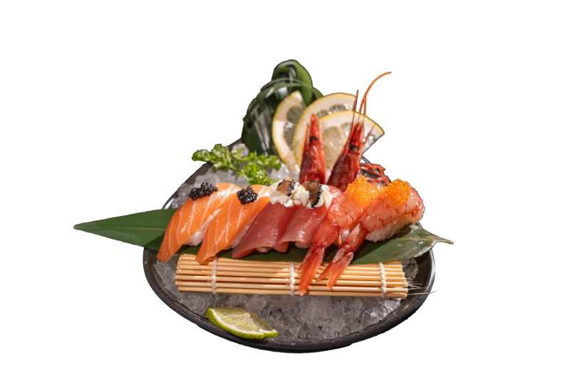 6pz nigiri mix con salmone,caviale tonno,philadephia, tartufo,gamberi rossi mazara del vallo e tobiko