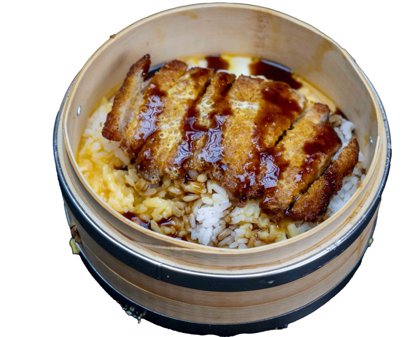 8 pz roll di riso con pollo fritto e insalata,coperto di cipolla fritta,salsa teriyaki e sesamo