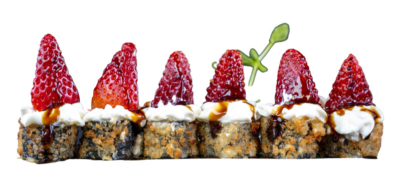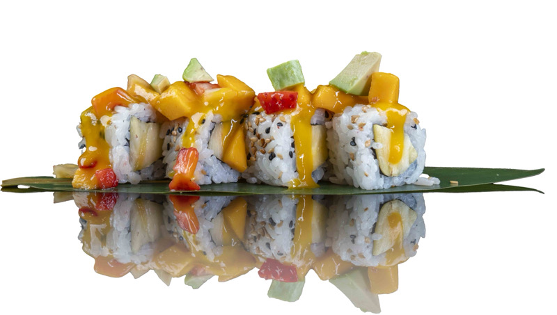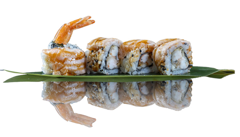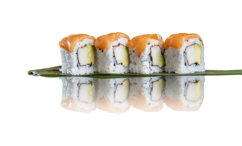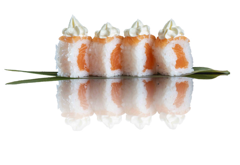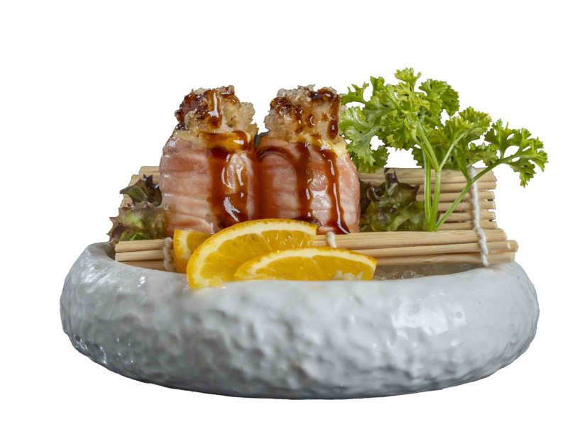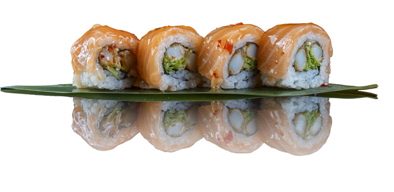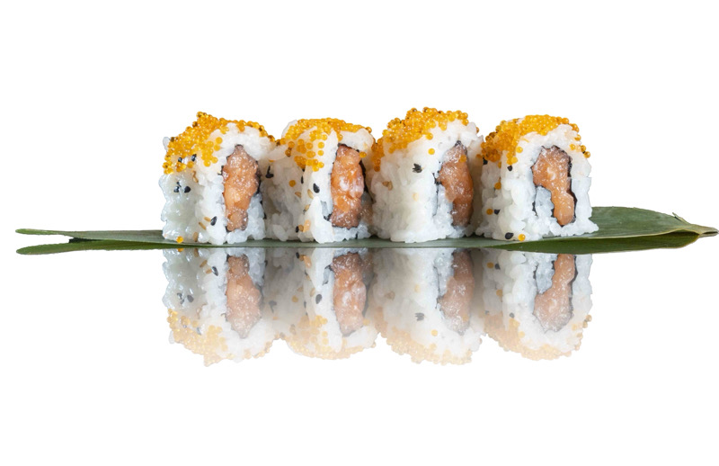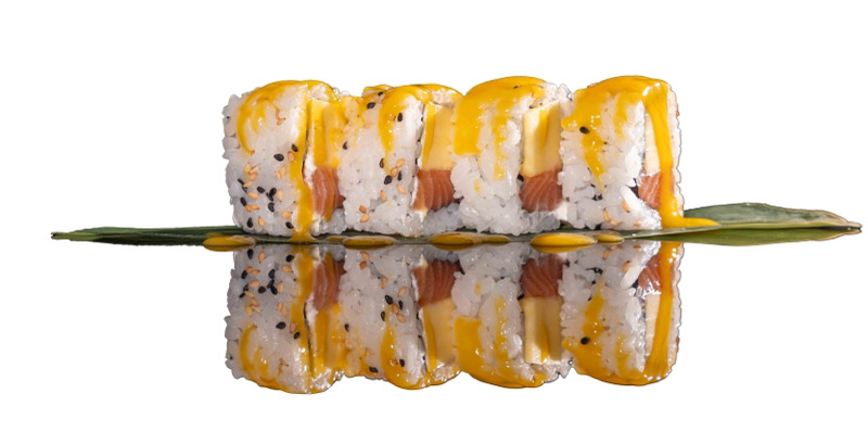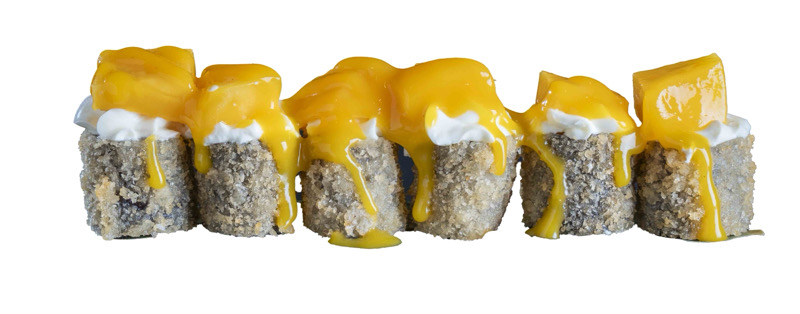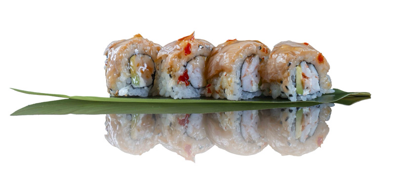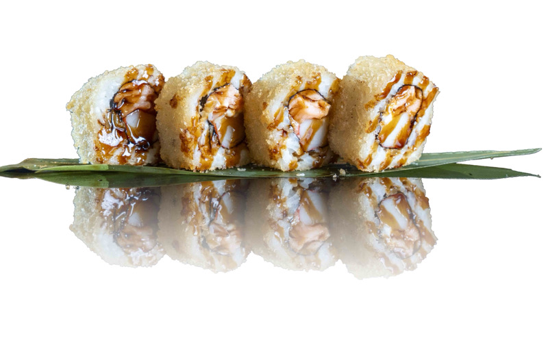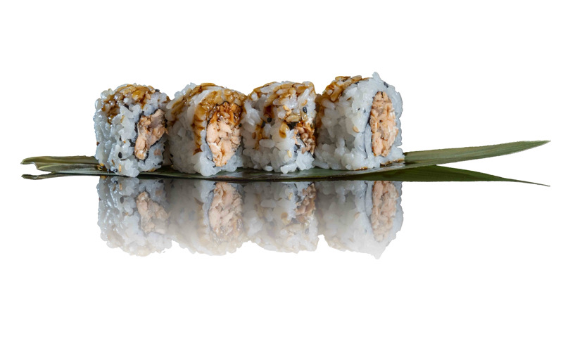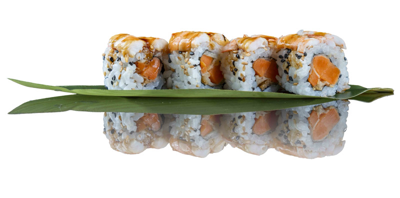 8 pz roll di riso fritto con salmone,philadephia e surimi,coperto di salsa teriyakiPRIMI