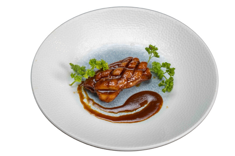 8 pz roll di riso con salmone spicy grigliato e philadephia,coperto di salsa teriyaki