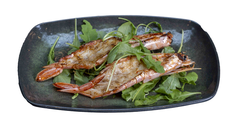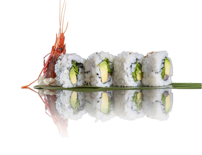 8 pz roll di riso con gambero rosso Mazara del Vallo,avocado e rucola,coperto di sesamo