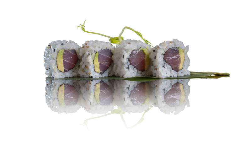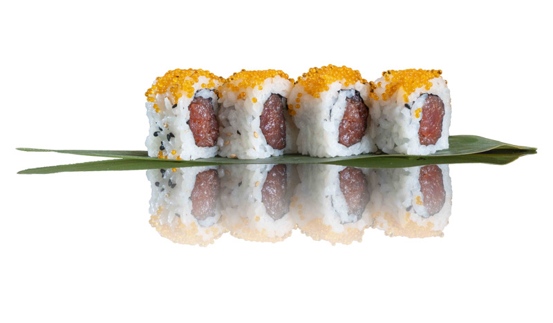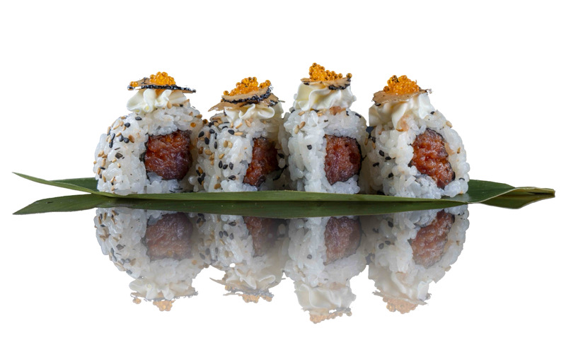 8 pz roll di riso con tonno spicy philadephia, tartufo,tobiko e sesamo